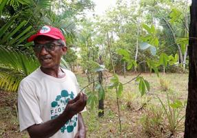 11月にCOP30が開かれた都市ベレンから北に30キロ。アマゾン川河口のモスケイロ島にあるミゲル・フィーリョさん(58)の農場では、アサイーの木が並ぶ雑木林の中でキャッサバやドラゴンフルーツ、パッションフルーツが育てられていた。成長に数年かかる果樹と短期間で収穫できる農作物を混植するのが特徴だ。