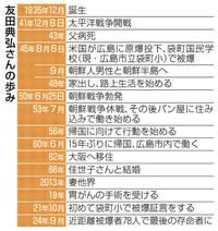 警鐘 戦後80年を歩んで 原爆と朝鮮戦争生き延びた孤児 死と隣り合わせの日々 2025年12月22日 05:00 被爆した袋町国民学校(現・広島市立袋町小)の校舎の一部を保存した平和資料館を訪れた友田典弘さん(右)=11月 友田典弘さん(手前)の被爆証言に耳を傾ける広島市立袋町小学校の児童ら=11月 弟幸生さん(右)、母タツヨさん(奥)と写真に納まる友田典弘さん ◆校庭で弟の遺体発見「ごめんな、ご... 残り2683文字(全文:2700文字) この記事をお読みいただくには「デジタルプラン」または「宅配+デジタルプラン」の会員登録が必要です。無料会員の方はログインしてマイページからコース変更してください。デジタルプランまたは宅配+デジタルプランをご登録中の方はログインしてください。 岐阜新聞デジタル会員に登録すると 無料会員向け記事が読める ニュースレターで最新情報が受け取れる デジタルプラン、宅配+デジタルプランなら Webオリジナルコンテンツが読める 紙面ビューアが読める チケットの先行発売に参加できる お得なクーポンが使える 新規登録ページ ログインページ トップ 岐阜のニュース 警鐘 戦後80年を歩んで 原爆と朝鮮戦争生き延びた孤児 死と隣り合わせの日々 関連記事 元研修医わいせつ 懲役7年6月判決 岐阜地裁 還付金「知らない」 大野被告裏金公判 会計責任者証言 性暴力 教員のデータベース 自治体、学校7割未活用 採用時の確認義務守らず ロマンス詐欺2969万円被害 各務原市の70代女性 精神疾患で教員7087人休職 24年度、2年連続7000人台 岐阜は10人増113人 杉田和博さん死去 元官房副長官、歴代最長 おすすめ記事 岐阜市の伝統校は商業教育も部活も全国トップ級! 生徒自ら会社経営も 「自走と伴走」で未来のリーダー育成 【ぎふ高校研究】 岐阜県内の観光消費額、過去最高を更新 2024年、4千億円超す 大垣の名所「カリヨン時計」15年ぶり復活 弘光舎本社ビルのからくり時計 2体の人形に歓声 岐阜市と「マーサ21」運営のカワボウが連携協定 子育て、健康、防災など幅広い分野