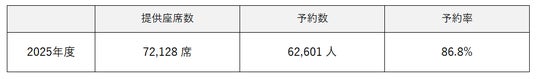 [提供座席数]55,984席 [予約数]48,655人 [予約率]86.9%