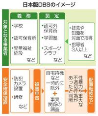 こども家庭庁は22日、子どもと接する仕事に就く人の性犯罪歴を雇用主側が確認する「日本版DBS」の運用指針案をまとめた。有識者会議が大筋で了承した。性犯罪歴の確認対象となる職種や事業者の範囲を明示した。教員や保育士は一律で対象となり、送迎バス運転手や警備員、事務職員などは現場の判断で対象になり得る。子どもを性被害から守る安全確保措置として防犯カメラ設置を推奨した。制度は2026年12月25日に開始予定。