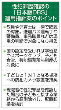 性犯歴確認、事務職ら対象 送迎運転手も 現場ごとで判断 日本版DBS指針案 2025年12月23日 05:00 ◆防犯カメラ設置推奨 こども家庭... 残り1062文字(全文:1076文字) この記事をお読みいただくには「デジタルプラン」または「宅配+デジタルプラン」の会員登録が必要です。無料会員の方はログインしてマイページからコース変更してください。デジタルプランまたは宅配+デジタルプランをご登録中の方はログインしてください。 岐阜新聞デジタル会員に登録すると 無料会員向け記事が読める ニュースレターで最新情報が受け取れる デジタルプラン、宅配+デジタルプランなら Webオリジナルコンテンツが読める 紙面ビューアが読める チケットの先行発売に参加できる お得なクーポンが使える 新規登録ページ ログインページ トップ 岐阜のニュース 性犯歴確認、事務職ら対象 送迎運転手も 現場ごとで判断 日本版DBS指針案 関連記事 予約殺到、道の駅で人気のアップルパイ最盛期 久々野特産リンゴ使用 陶芸家・荒川豊蔵の絵画紹介、可児市の資料館で企画展 志野陶片発見図も展示 岐阜県勢の活躍たたえ表彰 岐阜新聞スポーツ賞贈呈式 NOBUNAGA社と損保ジャパン協定締結 社会課題解決のスタートアップ支援 核融合実験で世界初成功 遠隔地からプラズマ温度制御 岐阜県内、26日から大雪恐れ 山地中心に平地も警戒 おすすめ記事 岐阜県勢の活躍たたえ表彰 岐阜新聞スポーツ賞贈呈式 【森嶋ルポ】日本一の強打の神髄伝授 Uー18前監督の小倉全由さん、今村新監督の中京で臨時コーチ 予約殺到、道の駅で人気のアップルパイ最盛期 久々野特産リンゴ使用 「夜」が岐阜市の観光を変える! 「日本3大山城夜景」が生む“泊まりたくなる町”とは