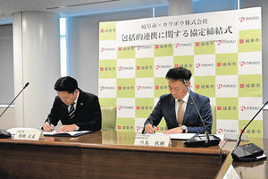 イベント開催でカワボウと連携 岐阜市が協定 2025年12月23日 05:00 協定書に署名するカワボウの川島政樹社長(右)と柴橋正直市長=岐阜市役所 岐阜市と商業施設「マーサ21」(... 残り359文字(全文:376文字) この記事をお読みいただくには「デジタルプラン」または「宅配+デジタルプラン」の会員登録が必要です。無料会員の方はログインしてマイページからコース変更してください。デジタルプランまたは宅配+デジタルプランをご登録中の方はログインしてください。 岐阜新聞デジタル会員に登録すると 無料会員向け記事が読める ニュースレターで最新情報が受け取れる デジタルプラン、宅配+デジタルプランなら Webオリジナルコンテンツが読める 紙面ビューアが読める チケットの先行発売に参加できる お得なクーポンが使える 新規登録ページ ログインページ トップ 岐阜のニュース イベント開催でカワボウと連携 岐阜市が協定 関連記事 予約殺到、道の駅で人気のアップルパイ最盛期 久々野特産リンゴ使用 陶芸家・荒川豊蔵の絵画紹介、可児市の資料館で企画展 志野陶片発見図も展示 岐阜県勢の活躍たたえ表彰 岐阜新聞スポーツ賞贈呈式 NOBUNAGA社と損保ジャパン協定締結 社会課題解決のスタートアップ支援 核融合実験で世界初成功 遠隔地からプラズマ温度制御 岐阜県内、26日から大雪恐れ 山地中心に平地も警戒 おすすめ記事 岐阜県勢の活躍たたえ表彰 岐阜新聞スポーツ賞贈呈式 【森嶋ルポ】日本一の強打の神髄伝授 Uー18前監督の小倉全由さん、今村新監督の中京で臨時コーチ 予約殺到、道の駅で人気のアップルパイ最盛期 久々野特産リンゴ使用 「夜」が岐阜市の観光を変える! 「日本3大山城夜景」が生む“泊まりたくなる町”とは