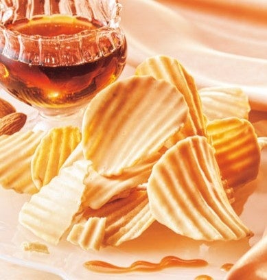 メープルシュガーとアーモンドプラリネペーストを加えたチョコレートを、ポテトチップの片面にコーティングしました。ほんのり塩味のポテトチップとやさしいメープルシュガーの風味が絶妙なバランスの、手が止まらなくなるおいしさです。後味にほんのりナッツが香ります。