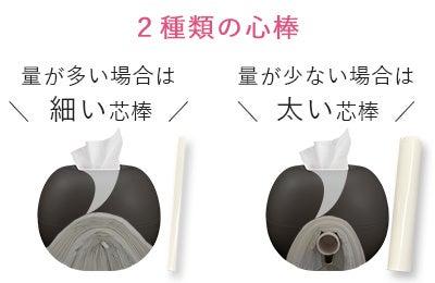 【1】ティッシュの厚みで変えられる2種類の芯棒