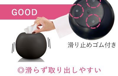 りんごのような丸みのあるシルエットは、従来のティッシュケースとは異なるやさしい存在感。