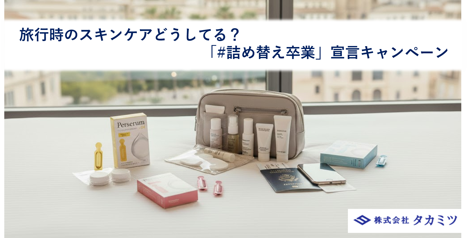タカミツでは、事前に1,000件を超えるアンケート結果やユーザーの声を確認する中で、旅行時のスキンケアにおいて、必ずしも「詰め替え」が主流ではない一方で、ボトル容器などかさばるスキンケアをそのまま持参せざるを得ない、アメニティを利用することで本来望まないケアを選択している。といった事情から、結果的に“妥協したスキンケア”が行われているのではないかという仮説に至りました。本キャンペーンは、こうした実情を踏まえ、旅行や出張時のスキンケアにおける「持ち運びの制約」や「品質面での妥協」が、どの程度起きているのかを確認することを目的として実施しています。