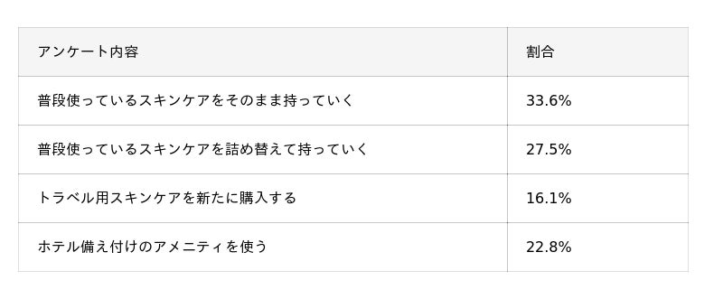 ・質問内容 :旅行時のスキンケアはどうしてる?