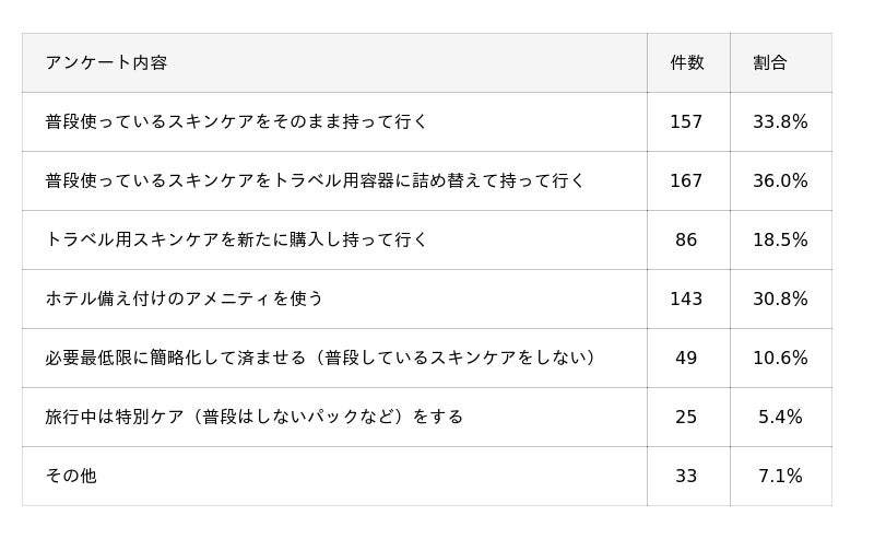 ・質問内容 :旅行時のスキンケアどうしていますか?(複数回答可)
