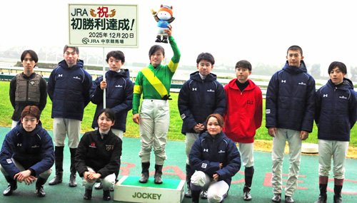 昨年のYJSファイナル最終戦では望月洵輝騎手(名古屋)が15番人気でJRA初勝利を飾ったが、今年は塩津騎手が8番人気で1着ゴール。初勝利セレモニーも開かれ、同じ兵庫の土方騎手がプラカードを持ち、JRAの古川奈穂騎手が記念品のプレゼンターを務め、松本騎手らジョッキー仲間がファンらと共に祝福した。