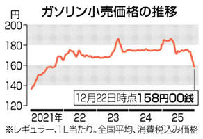 ガソリン下落158円 全国平均 4年4カ月ぶり水準 2025年12月25日 05:00 経済産業省が24日発表した22日... 残り404文字(全文:421文字) この記事をお読みいただくには「デジタルプラン」または「宅配+デジタルプラン」の会員登録が必要です。無料会員の方はログインしてマイページからコース変更してください。デジタルプランまたは宅配+デジタルプランをご登録中の方はログインしてください。 岐阜新聞デジタル会員に登録すると 無料会員向け記事が読める ニュースレターで最新情報が受け取れる デジタルプラン、宅配+デジタルプランなら Webオリジナルコンテンツが読める 紙面ビューアが読める チケットの先行発売に参加できる お得なクーポンが使える 新規登録ページ ログインページ トップ 岐阜のニュース ガソリン下落158円 全国平均 4年4カ月ぶり水準 関連記事 部活外部顧問がトイレにカメラ 名古屋、容疑で逮捕 地面師指示役懲役10年判決 14億円詐取で大阪地裁 ロピアの改善計画承認 無償派遣 400社に4億円返還 公取委 東名でバスなど6台が絡む事故 静岡、大学生軽傷 インフルエンサー社長脱税 東京地検 1.5億円、在宅起訴 上司の異動 町長が却下 パワハラ死亡 三重・明和町 第三者委「不適切」 おすすめ記事 羽島市がドラゴンズ2軍本拠地に応募へ 市内2カ所を候補地に 岐阜県内で初 【森嶋ルポ】県岐阜商が甲子園4強! 公立旋風で全国揺らす 2025年の岐阜県高校野球回顧(前編) 町民1人ずつ1万4千円分商品券 岐阜・北方町、物価高対策で配布へ 飛騨市舞台の映画「仏師」撮影の裏話披露 監督・脚本の田中綱一さんらトーク