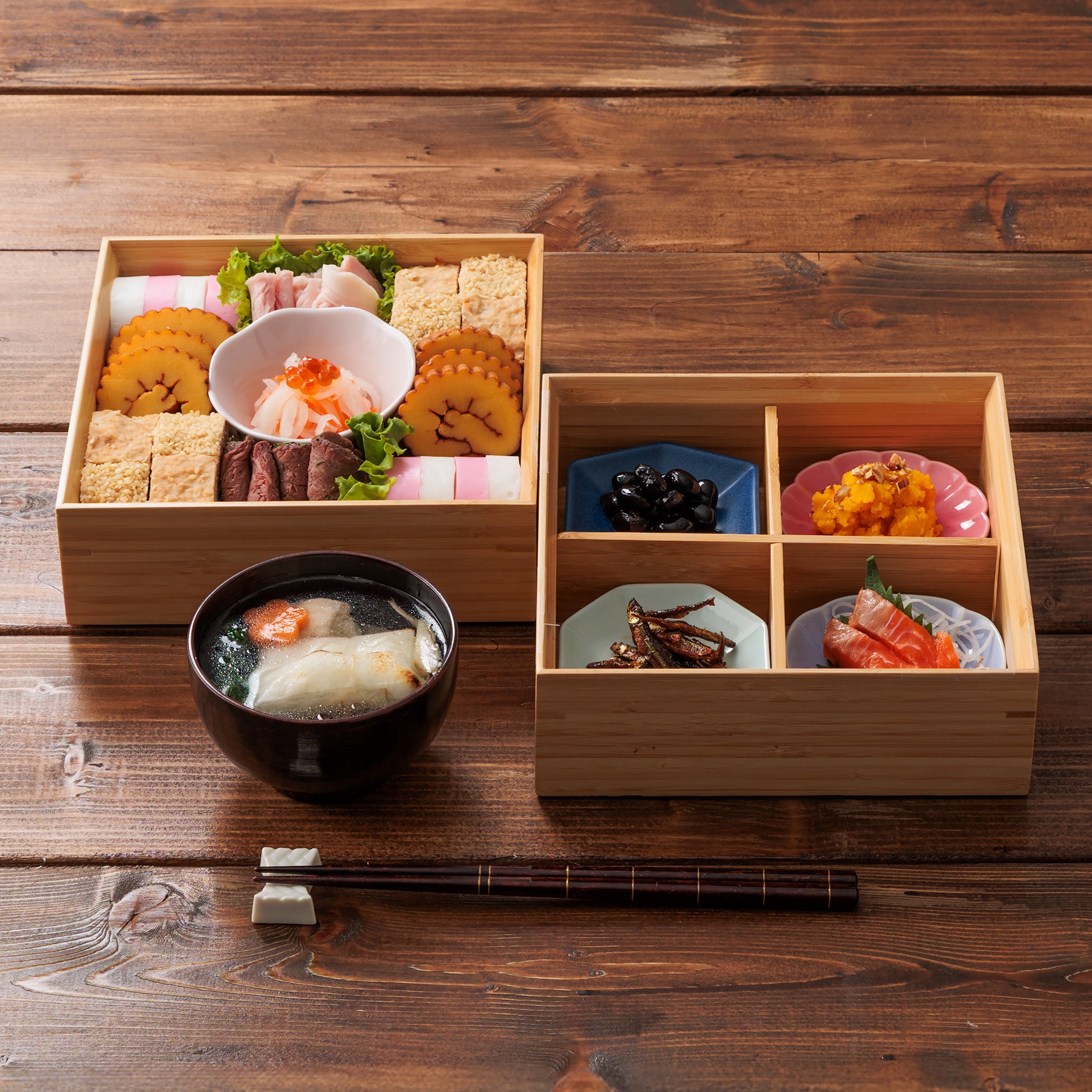 お正月はもちろん、ちらし寿司などを入れてお花見や運動会などのイベントに、お弁当箱としてもお使いいただけます。竹のウレタン塗装仕上げなので、塗のお重よりカジュアルに日常使いができ、長く使えるお重です。