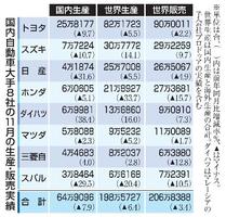一方、2位のスズキはインドが好調で、14・1%増の30万7772台と11月として過去最高だった。ダイハツ工業は16・0%増。三菱自動車は2・8%増だった
