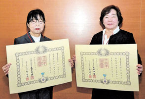 元警官女性に危険業務叙勲 田中さん(高山市)塚本さん(岐阜市)県警初 厳しい職場環境で従事 2025年12月26日 05:00 危険業務従事者叙勲を受けた田中久美子さん(左)と塚本眞美子さん=県警本部 今秋の危険業務従事者叙勲で、県警... 残り656文字(全文:673文字) この記事をお読みいただくには「デジタルプラン」または「宅配+デジタルプラン」の会員登録が必要です。無料会員の方はログインしてマイページからコース変更してください。デジタルプランまたは宅配+デジタルプランをご登録中の方はログインしてください。 岐阜新聞デジタル会員に登録すると 無料会員向け記事が読める ニュースレターで最新情報が受け取れる デジタルプラン、宅配+デジタルプランなら Webオリジナルコンテンツが読める 紙面ビューアが読める チケットの先行発売に参加できる お得なクーポンが使える 新規登録ページ ログインページ トップ 岐阜のニュース 元警官女性に危険業務叙勲 田中さん(高山市)塚本さん(岐阜市)県警初 厳しい職場環境で従事 関連記事 女児に体触らせる横浜元教諭追起訴 盗撮共有事件 福岡刺傷事件の被害女性は重傷 養殖中のカキ盗難か 広島湾 今季出荷の200万円相当 凍結でスリップか4台事故1人死亡 長野 工場に刃物男、15人負傷 静岡・三島殺人未遂容疑、逮捕 良い年へ馬(ま)っしぐら 「巳」から干支引き継ぎ おすすめ記事 旧岐阜県庁舎、ミュージアムやホテルに 利活用の優先交渉権者決まる 学校以外にも選択肢がある! 岐阜市で1月10日「ニュースクールフェス」 金メダリストの講演やキッチンカー 岐阜県で年末年始どこ行こう?【25年-26年】 岐阜県が「ラスパイレス指数」公表 県内42市町村公務員の給与水準【一覧表掲載】