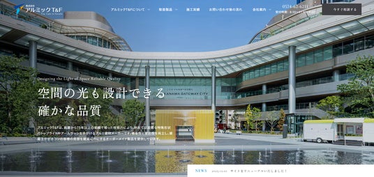 今回のWebサイトリニューアルでは、アルミックT&F様が長年にわたり培ってこられた技術力と、光を活かした美しい建築表現をサイト全体で表現しました。精緻なグリッドレイアウトや大きな実績写真を活用し、トップライト・アールサッシの持つ魅力を直感的に伝えるデザインにまとめています。また、職人の姿や製造工程も取り入れ、安心感と信頼性を高める構成といたしました。本サイトを通じて、アルミックT&F様の価値がより多くの方々に届くことを願っております。