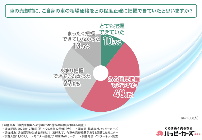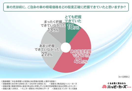 そこで今回、車買取り専門店の株式会社ハッピーカーズ(https://happycars.jp/)は、過去5年以内に所有していた車の売却経験がある方を対象に、「中古車相場への意識とSNS情報の影響」に関する調査を実施しました。
