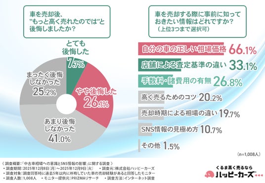株式会社ハッピーカーズ(本社所在地:神奈川県鎌倉市、代表取締役:新佛 千治)は、過去5年以内に所有していた車の売却経験がある方を対象に、「中古車相場への意識とSNS情報の影響」に関する調査を実施しました。