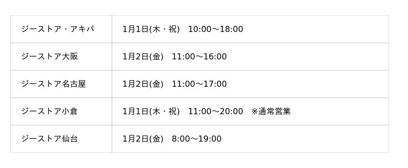 ◆2026年GEE!STORE(ジーストア)初売り日程