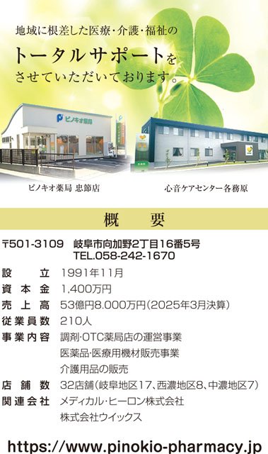 一昨年に各務原市でドローンによる医薬品配送の実証実験を行ったのに続き、昨年は10月に郡上市と災害協定を締結し、11月に郡上市の石徹白地区で同様の実証実験を行いました。ピノキオ薬局為真店(白鳥町)から北濃小学校まで車で移動後に、同小からドローンを飛ばし、石徹白小学校まで標高1300メートル以上の山々を越えて約10キロ配送しました。今回は飛行機型のドローンを活用したこともあり、最高速度は時速130キロでスピード感が違いました。また、実証実験だけでなく、北濃小や石徹白小の児童たちと交流を深めることもできました。
