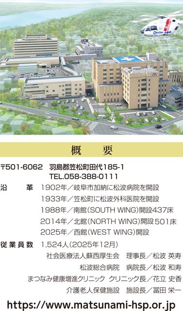昨年4月に県から、24時間体制で重篤な救急患者を受け入れる「救命救急センター」の指定を受けました。西館が新たに完成し、最新式のがん放射線治療装置「ラディザクト」が導入され、生活習慣病患者などに向けたフィットネスクラブを備えた医療施設「FIT―EASY松波総合病院店+メディカルまつなみ(医療法42条施設)」が誕生しました。地域を守る医療体制がさらに強化されたと実感します。ラディザクトは腫瘍にピンポイントで照射できるため、患者さんの負担を軽減し、副作用も少ないです。メディカルまつなみでは疾病の治療や予防、手術後の回復を目的にした医療法42条に基づいた疾病予防運動施設として運用しています。また、運動処方箋を出された患者さんは、医師や理学療法士らのトレーニング指導を受けることも可能です。