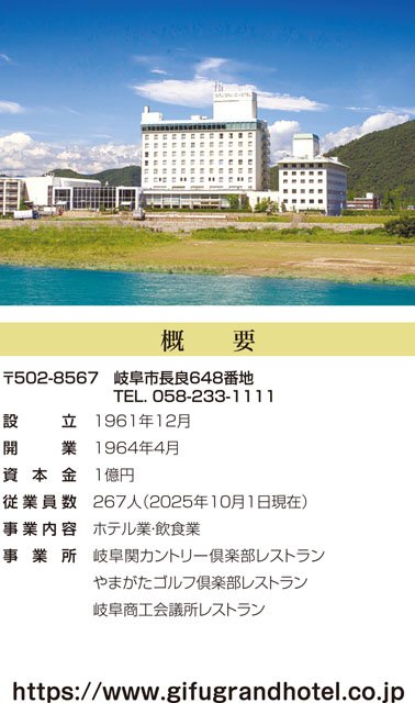 26年は、国内外から訪れるお客さまに、世代や国籍を問わず「古き良きホテル」としての魅力を体験していただける1年にしたいと考えています。客室の半数は和室で、長良川温泉を引いた大浴場も備え、旅館の趣とホテルの快適さを兼ね備えています。岐阜城と長良川を望む景観も大きな魅力です。お食事も四季折々の食材を生かし、幅広いお客さまに心ゆくまで楽しんでいただけるよう努めてまいります。婚礼においても、地域に寄り添うホテルとして、人生の節目を彩る場をこれからも守り続けてまいります。