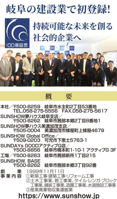 SNSを通じて全国から問い合わせをいただいていることを受けて、「SUNSHOW夢ハウス」のフランチャイズ(FC)化を進めていきます。他地域での展開を経て、FC事業は山形県のみですが、今年からは岐阜県内・近郊で拡大を図ります。また昨年は、中小企業庁が年間の売上高100億円を目指す企業を後押しする「100億宣言」を実施。50年までの達成を目指して着実に歩みを進めるほか、宣言をしたい企業のコンサルティングも行っています。このほか、昨年の大阪・関西万博で講演を行ったことを機に、SDGsをウェルビーイングという新たなステージへと変化させていく取り組みに着手。大手企業と連携し、プロジェクトを進めてまいります。