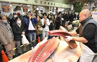岐阜市中央市場で年末一般開放、正月準備で人波 新鮮食材お値打ち 社会 2025年12月29日 08:16 市場の一般開放でマグロの解体を見学する買い物客=28日午前7時30分、岐阜市茜部新所、市中央卸売市場 岐阜市茜部新所の市中央卸売市場で28日、年末一般開放が始まり、正月準備のための食材を求める買い物客で... 全文:438文字 この記事をお読みいただくには「デジタルプラン」または「宅配+デジタルプラン」の会員登録が必要です。無料会員の方はログインしてマイページからコース変更してください。デジタルプランまたは宅配+デジタルプランをご登録中の方はログインしてください。 岐阜新聞デジタル会員に登録すると 無料会員向け記事が読める ニュースレターで最新情報が受け取れる デジタルプラン、宅配+デジタルプランなら Webオリジナルコンテンツが読める 紙面ビューアが読める チケットの先行発売に参加できる お得なクーポンが使える 新規登録ページ ログインページ トップ 岐阜のニュース 社会 岐阜市中央市場で年末一般開放、正月準備で人波 新鮮食材お値打ち 関連記事 金華山登山にサンダル「絶対やめて」事故最多…なぜ? 低山で人気も危険箇所が 金華山ロープウェーゴンドラ、信長愛馬の新年飾り 元日も運行 岐阜県図書館内レストラン「杏」27年の歴史に幕 社長「違う場所で再出発」 「長良川の鮎」食べて血液サラサラ!?木曽川や揖斐川と比べ効果成分多く 岐阜薬科大生が分析 3.6メートル虚実の境界描く 押味さん、岐阜市で絵画展示 交差点死亡事故現場で合同点検 岐阜中署など おすすめ記事 金華山登山にサンダル「絶対やめて」事故最多…なぜ? 低山で人気も危険箇所が 岐阜市中央市場で年末一般開放、正月準備で人波 新鮮食材お値打ち 「2026円」希少5速MT車、元日に抽選販売 中津スバル「執念で確保した」 日本のホテル・旅館100選「水明館」初の総合1位 全国の旅行業者評価