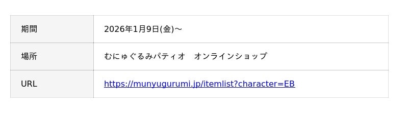1月9日(金)~、むにゅぐるみパティオ オンラインショップでも販売スタート♪