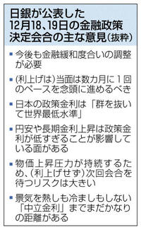 日銀委員、利上げ継続主張 12月会合の意見を公表 2025年12月30日 05:00 日銀が利上げを決めた18、19日... 残り534文字(全文:551文字) この記事をお読みいただくには「デジタルプラン」または「宅配+デジタルプラン」の会員登録が必要です。無料会員の方はログインしてマイページからコース変更してください。デジタルプランまたは宅配+デジタルプランをご登録中の方はログインしてください。 岐阜新聞デジタル会員に登録すると 無料会員向け記事が読める ニュースレターで最新情報が受け取れる デジタルプラン、宅配+デジタルプランなら Webオリジナルコンテンツが読める 紙面ビューアが読める チケットの先行発売に参加できる お得なクーポンが使える 新規登録ページ ログインページ トップ 岐阜のニュース 日銀委員、利上げ継続主張 12月会合の意見を公表 関連記事 6台が絡む事故でトラック男性死亡 千葉の国道 物価高、細る越冬支援 困窮者らへの食料品寄付減 年の瀬 名古屋の活動団体懸念 交差点で車と衝突 自転車の男性死亡 北方町 温泉旅館にクマ 緊急銃猟で駆除 仙台市 就寝中強盗 200万円奪う 茨城、男2人逃走 住宅兼動物病院 火災で3人死亡 神奈川 おすすめ記事 【初詣ガイド2026】岐阜県内の主な神社仏閣 振る舞いや交通規制案内 右も左も「聖子ちゃんカット」 テレビ発、トレンド共有【昭和100年 岐阜発シン昭和論】 鍛治舎巧さん「No.1への道」 メンタルトレーニング~百折不撓の心を創る~〈習熟期(3年)〉ピークパフォーマンスを目指したメンタルトレーニング 岐阜にしみる能登の味…海鮮汁販売 能登半島地震から元日で2年