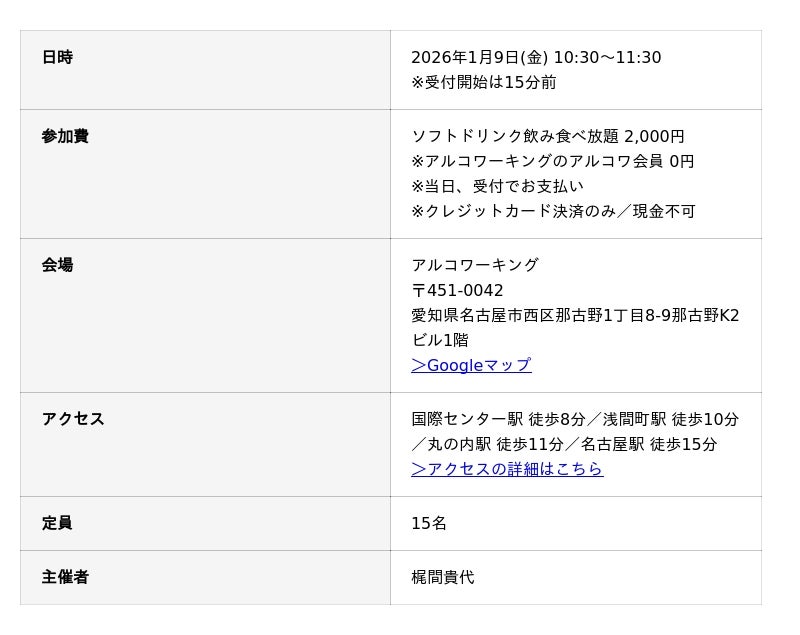 2026年1月9日(金) 10:30~11:30に、名古屋市のアルコワーキング(運営会社:室屋アフィリエイト合同会社、所在地:愛知県名古屋市西区那古野、代表:室屋清隆)にて、「第2回名古屋ビジネス交流会」が開催されます。