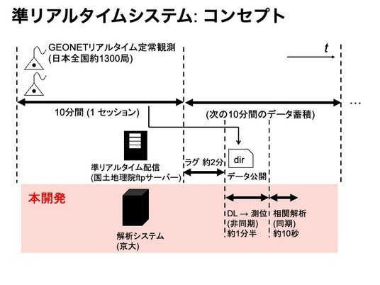 京都大学大学院情報学研究科物理統計学分野(教授:梅野健)の小池元助教と梅野健教授は、国土地理院が運営管理するGEONETデータを取得してから約10分~15分後に異常検知結果を表示する準リアルタイム大地震発生異常検知システムのβ版を開発しました。2025年12月20日に東京品川で行われた日本地震予知学会学術講演会にて、その概要が発表されました。 発表の概要は以下の通りです: