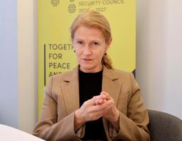 大使は、ロシアの侵攻は「明らかな国際法、国連憲章違反だ」と指摘。武力による国境変更を認めてはならないと述べ、戦争犯罪の責任追及と併せ、安保理でウクライナ侵攻を優先課題として取り組むと強調した。