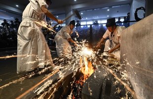 日本刀鍛錬、刀匠が盛業祈願 関市で新春恒例の打ち初め式 社会 2026年1月2日 16:12 打ち初め式で火花を散らす刀匠たち=2日午前11時1分、関市南春日町、関鍛冶伝承館(撮影・堀尚人) 打ち初め式で火花を散らす刀匠たち=2日午前11時13分、関市南春日町、関鍛冶伝承館(撮影・堀尚人) 新春の刀都を彩る風物詩「関伝古式日本刀鍛錬打ち初め式」(関伝日本刀鍛錬技術保存会主催)が2日、関市南春日町の関鍛冶伝承館で行われ、刀匠が盛業と安全を祈願した。... 全文:413文字 この記事をお読みいただくには「デジタルプラン」または「宅配+デジタルプラン」の会員登録が必要です。無料会員の方はログインしてマイページからコース変更してください。デジタルプランまたは宅配+デジタルプランをご登録中の方はログインしてください。 岐阜新聞デジタル会員に登録すると 無料会員向け記事が読める ニュースレターで最新情報が受け取れる デジタルプラン、宅配+デジタルプランなら Webオリジナルコンテンツが読める 紙面ビューアが読める チケットの先行発売に参加できる お得なクーポンが使える 新規登録ページ ログインページ トップ 岐阜のニュース 社会 日本刀鍛錬、刀匠が盛業祈願 関市で新春恒例の打ち初め式 関連記事 部活動が全力でできる! 関市立の高校は1割弱が下宿生、地域に密着し求人倍率は35倍 【ぎふ高校研究】 関市の企業に毎年数十人就職! 地域を支える学校の人材育成キーワードは「学び直し」【ぎふ高校研究】 関市の進学校は国公立大に5割が合格! 地域の課題解決に取り組む探究の学びとは 【ぎふ高校研究】 「凌霜」胸に塾へ通わず猛勉強 郡上市の伝統校は例年30人超が国公立大学に合格 【ぎふ高校研究】 創部7年、中部学院大空手道部がインカレ初優勝 済美高と連携、選手強化 山あいに墜落、飛燕搭乗者の死 岐阜・関市の地元団体が看板設置【ぎふ戦後80年】 おすすめ記事 日本刀鍛錬、刀匠が盛業祈願 関市で新春恒例の打ち初め式 箱根駅伝、岐阜県出身者も好走 往路は青学大3連覇 20歳の節目、地元で喜び合う 高山市上宝・奥飛騨温泉郷地区で「二十歳のつどい」 2026円でマイカーをゲットしたのは? 岐阜・中津川のスバルで新春恒例の抽選会