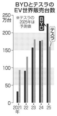 BYD、EV世界一 25年見通し 販売数、テスラ抜く 2026年1月3日 05:00 【上海共同】中国の電気自動車(E... 残り337文字(全文:354文字) この記事をお読みいただくには「デジタルプラン」または「宅配+デジタルプラン」の会員登録が必要です。無料会員の方はログインしてマイページからコース変更してください。デジタルプランまたは宅配+デジタルプランをご登録中の方はログインしてください。 岐阜新聞デジタル会員に登録すると 無料会員向け記事が読める ニュースレターで最新情報が受け取れる デジタルプラン、宅配+デジタルプランなら Webオリジナルコンテンツが読める 紙面ビューアが読める チケットの先行発売に参加できる お得なクーポンが使える 新規登録ページ ログインページ トップ 岐阜のニュース BYD、EV世界一 25年見通し 販売数、テスラ抜く 関連記事 八百津せんべい、優しい味わい 趣向を凝らし多様な食感 手話サークル「竹の子」と泉中吹奏楽部が「とき☆キラリ賞」受賞 土岐商議所互礼会 会頭、4事業に意欲 植物学の歴史たどる 各務原市のくすり博物館で企画展 牧野富太郎作成の図鑑など展示 「政治参加を」伝える書 岐阜市「明るい選挙啓発書道」展示 創作の原点、「特別な土地」中津川・付知で原画展 絵本作家の村上康成さん こども園にラップ式トイレ 下呂市、災害時の断水に対応 おすすめ記事 ひな人形商戦ピーク 今どきの人気は? 岐阜県内の人形店 「ナイトタイムエコノミーを充実」観光振興へ 岐阜商工会議所が新春会見 【名将流儀】プロ投手を何人も育成 原点は守備中心の機動力野球 田口聖記さん【ぎふ高校野球】 丸善の創業者・早矢仕有的(山県市出身)の生涯たどる 東京・丸の内本店で企画展