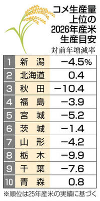 26年産米 減産や横ばい 25年の上位10道県 暴落懸念で設定 2026年1月5日 05:00 2026年産の主食用米の生産目安... 残り731文字(全文:748文字) この記事をお読みいただくには「デジタルプラン」または「宅配+デジタルプラン」の会員登録が必要です。無料会員の方はログインしてマイページからコース変更してください。デジタルプランまたは宅配+デジタルプランをご登録中の方はログインしてください。 岐阜新聞デジタル会員に登録すると 無料会員向け記事が読める ニュースレターで最新情報が受け取れる デジタルプラン、宅配+デジタルプランなら Webオリジナルコンテンツが読める 紙面ビューアが読める チケットの先行発売に参加できる お得なクーポンが使える 新規登録ページ ログインページ トップ 岐阜のニュース 26年産米 減産や横ばい 25年の上位10道県 暴落懸念で設定 関連記事 岐阜第一、全国初勝利を後輩に託す/県岐阜商、王者相手に奮闘 全日本高校バレー デンソーが8強 全日本バスケファイナルR 競馬 JRA年度代表馬にフォーエバーヤング 箱根駅伝 けが明けでも区間新樹立 駒大佐藤最後に意地 卒業後は米国へ 久保、新年初戦で好感触 「気持ちいいアシスト」 成績不振で監督解任 チュニジアW杯へ暗雲 おすすめ記事 福女チャレンジ111人激走、初代「最強の福女」決まる 恵那市の神社で初開催 岐阜市中心市街地の空洞化、官民の認識に差 街角では諦めも【県都はいま ’26岐阜市長選(1)】 高山市民に1万3000円商品券配布へ 市長「おこめ券、最初から選択肢外」 神谷そら選手、原点のゴルフ場に恩返し 整備用具寄贈「後輩に使ってもらえたら」