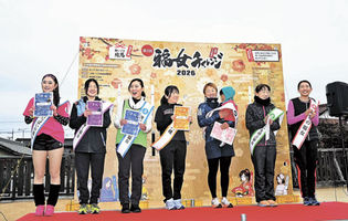 「福女」疾走恵那沸く 実業団選手から88歳、111人完走 2026年1月8日 05:00 手首のバンドと同じ色のカードを手に駆け出す参加者 「福女チャレンジ」で決まった上位7人の福女たち 沿道で参加者を応援する人たち=いずれも恵那市大井町 恵那市大井町の市神神社周辺を舞台... 残り737文字(全文:754文字) この記事をお読みいただくには「デジタルプラン」または「宅配+デジタルプラン」の会員登録が必要です。無料会員の方はログインしてマイページからコース変更してください。デジタルプランまたは宅配+デジタルプランをご登録中の方はログインしてください。 岐阜新聞デジタル会員に登録すると 無料会員向け記事が読める ニュースレターで最新情報が受け取れる デジタルプラン、宅配+デジタルプランなら Webオリジナルコンテンツが読める 紙面ビューアが読める チケットの先行発売に参加できる お得なクーポンが使える 新規登録ページ ログインページ トップ 岐阜のニュース 「福女」疾走恵那沸く 実業団選手から88歳、111人完走 関連記事 福女レースで2冠達成「周りに福を」 恵那市岩村町でも初開催 「一番福と新酒」お裾分け 恵那市の岩村醸造で「まつり」 福女撰び〝女城主〟が振る舞う 福女チャレンジ111人激走、初代「最強の福女」決まる 恵那市の神社で初開催 小中生座禅、無心の境地 恵那市の林昌寺で20人、気持ち新た ドッジ代表選手と交流 スミセイプロジェクト 大井小で教室 不審なネットバンク取引 特殊詐欺被害を防ぐ 恵那署 東濃信金支店に感謝状 おすすめ記事 都道府県対抗女子駅伝、岐阜は10位台目指す 11日、京都で号砲【オーダー表掲載】 透き通る氷の彫刻、パティシエら制作 高山市「氷と灯りの祭典」あす10日開幕 可児市がオークマと防災備蓄品で協定 工場内で市の物資保管 岐阜県で今週末どこ行こう?【1月10、11、12日】