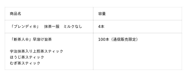 味の素AGF株式会社(代表取締役社長:島本 憲仁 以下、味の素AGF)は、2026年4月1日(水)納品分より、スティック(日本茶スティック)商品計4品種の価格改定を実施します。
