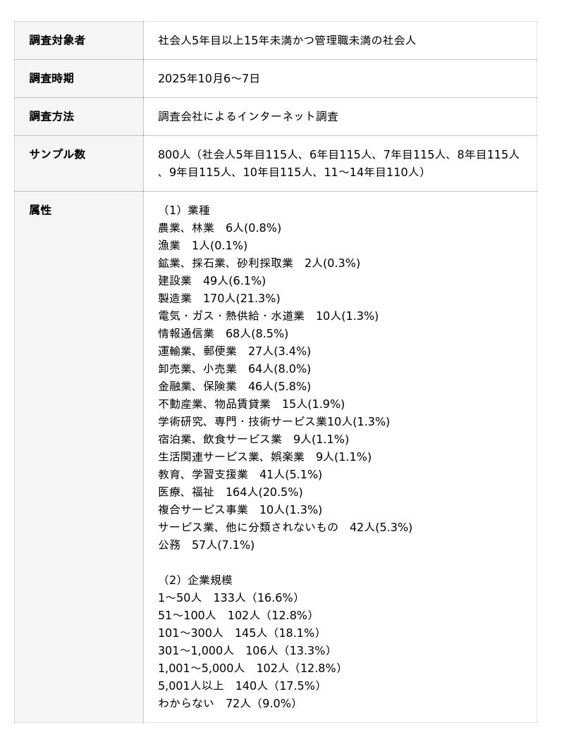 *本リリースでは、社会人5年目以上15年未満、役職に就いていない社員を「ミドルキャリア」と記載