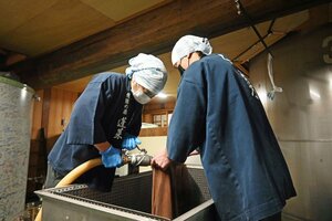 飛騨市古川町壱之町の渡辺酒造店は8日、復刻米「ひだみのり」を原料に使用し、柿渋染めの木綿袋で酒を搾る昔ながらの技法で酒造りを行った。完成した酒は「蓬莱 木綿搾り 純米大吟醸」として28日から販売する。...