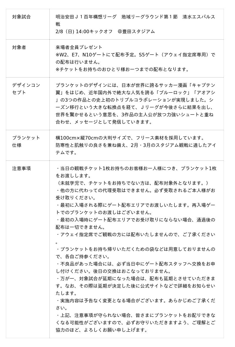 2/8(日)に豊田スタジアムにて開催される明治安田J1百年構想リーグ開幕戦にて、「熱狂開幕ブランケット」を来場者全員にプレゼントいたします。本企画はシーズン移行に際して開催される特別な大会である「明治安田Jリーグ百年構想リーグ」を記念して全国の試合会場にて実施されるものです。