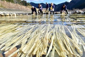 コウゾの寒ざらし、本美濃紙の伝統つなぐ 美濃市・板取川で工程再現 社会 2026年1月9日 19:09 職人の手で清流にさらされるコウゾ=9日午前10時36分、美濃市御手洗、板取川(撮影・坂井萌香) 本美濃紙の原料を冷たい川にさらす「コウゾの寒ざらし」が9日、美濃市御手洗の板取川であり、美濃手すき和紙協同組合と本美濃紙保存会の和紙職人15人が伝統的な工程を再現した。 コウゾを白く軟らかくするための作業。... 全文:351文字 この記事をお読みいただくには「デジタルプラン」または「宅配+デジタルプラン」の会員登録が必要です。無料会員の方はログインしてマイページからコース変更してください。デジタルプランまたは宅配+デジタルプランをご登録中の方はログインしてください。 岐阜新聞デジタル会員に登録すると 無料会員向け記事が読める ニュースレターで最新情報が受け取れる デジタルプラン、宅配+デジタルプランなら Webオリジナルコンテンツが読める 紙面ビューアが読める チケットの先行発売に参加できる お得なクーポンが使える 新規登録ページ ログインページ トップ 岐阜のニュース 社会 コウゾの寒ざらし、本美濃紙の伝統つなぐ 美濃市・板取川で工程再現 関連記事 地域活性化へ思い共有 美濃商議所が賀詞交歓会 美濃小6年生が卒業証書手すき TOJ美濃ステージ取りやめ「名物が…残念」 魅力発信の好機/道路封鎖が住民負荷の声も 岐阜県美濃市がTOJ美濃ステージ開催取りやめ 財政負担増で市長「苦渋の決断」 ガリ版刷り、機械や印刷物を紹介 美濃和紙の里会館で企画展 14歳で囲碁プロ棋士に、6度目挑戦で念願 岐阜市の中2「学業と両立」 おすすめ記事 観光施策、官民連携進まず 5月に岐阜城休館、楽市の誘客策は【県都はいま ’26岐阜市長選(3)】 放射性物質の粉末入った瓶を紛失 大垣市民病院、院内で保管 下呂市キャラ「げろぐるくん」ユーチューバーに 中学生の提案採用、ショート動画でPR 恵方巻き、名店監修やはみ出す太巻きなど31品目 イオン各務原で予約受け付け