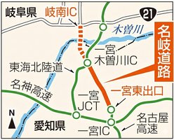 岐阜、名古屋の両地域をつなぐ高規格道路「名岐道路」について、名古屋高速道路公社は9日、一宮と一宮木曽川の両インターチェンジ(IC、愛知県一宮市)間について、国から有料道路事業化の許可を受けたと発表した。...