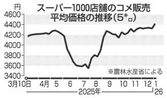 コメ5キロ4416円 最高値 全国スーパー1000店平均 2026年1月10日 05:00 農林水産省は9日、全国のスーパー... 残り608文字(全文:625文字) この記事をお読みいただくには「デジタルプラン」または「宅配+デジタルプラン」の会員登録が必要です。無料会員の方はログインしてマイページからコース変更してください。デジタルプランまたは宅配+デジタルプランをご登録中の方はログインしてください。 岐阜新聞デジタル会員に登録すると 無料会員向け記事が読める ニュースレターで最新情報が受け取れる デジタルプラン、宅配+デジタルプランなら Webオリジナルコンテンツが読める 紙面ビューアが読める チケットの先行発売に参加できる お得なクーポンが使える 新規登録ページ ログインページ トップ 岐阜のニュース コメ5キロ4416円 最高値 全国スーパー1000店平均 関連記事 自転車の男性が用水路で転落死 大野町、帰省中 県内平地でも大雪の恐れ 壁の中に女性遺体 道警、遺棄疑い 飲食店経営者逮捕 高知高野球部コーチが暴言 部員に「殺すぞ」 高山村は飛騨じゃねぇし 自虐のタカオ君 “高山”つなぐ 「市」と長野の「村」、あったか交流 暴行の動画 投稿される 大分の中学校 おすすめ記事 FC岐阜「百年構想リーグ」で地力アップへ 岐阜市で新体制・新加入選手会見 岐阜県内、大雪の恐れ 美濃地方の平地でも降雪予想(情報更新) 大垣ミナモ今年こそ飛躍! ソフトボール女子、大垣市の神社で新年の必勝祈願 「福男選び」中津川市で今年も開催、参拝一番乗りへ疾走 一番福は高校生