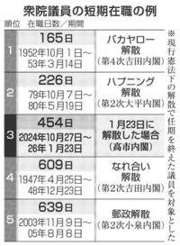議員在職454日 3番目の短さに 冒頭解散 2026年1月13日 05:00 高市早苗首相が、23日召集予定の... 残り338文字(全文:355文字) この記事をお読みいただくには「デジタルプラン」または「宅配+デジタルプラン」の会員登録が必要です。無料会員の方はログインしてマイページからコース変更してください。デジタルプランまたは宅配+デジタルプランをご登録中の方はログインしてください。 岐阜新聞デジタル会員に登録すると 無料会員向け記事が読める ニュースレターで最新情報が受け取れる デジタルプラン、宅配+デジタルプランなら Webオリジナルコンテンツが読める 紙面ビューアが読める チケットの先行発売に参加できる お得なクーポンが使える 新規登録ページ ログインページ トップ 岐阜のニュース 議員在職454日 3番目の短さに 冒頭解散 関連記事 東濃中部医療センター内覧会、最新の手術室や分娩室公開 土岐市 関市の親子3人、空手の黒帯を同時取得「年齢や子育て言い訳にせず…うれしい」 岐阜県内スキー場半減、広大な跡地どうする? 1999年40カ所→16カ所に ペット同伴できる古民家カフェ、郡上市にオープン 個室も準備中 ブタ、トラックからトン走 西尾市 国道一時通行止め 新潟で住宅火災 80代夫婦か死亡 おすすめ記事 岐阜県内スキー場半減、広大な跡地どうする? 1999年40カ所→16カ所に 関市の親子3人、空手の黒帯を同時取得「年齢や子育て言い訳にせず…うれしい」 ペット同伴できる古民家カフェ、郡上市にオープン 個室も準備中 東濃中部医療センター内覧会、最新の手術室や分娩室公開 土岐市