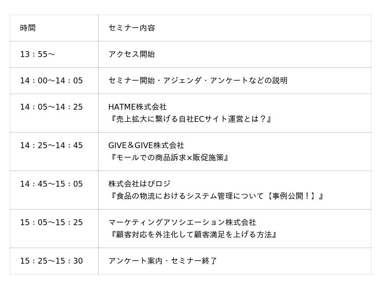 本セミナーでは、自社EC・モールで売上を伸ばすための出店戦略のポイントから、重要な顧客接点である顧客対応、年々コストが上昇する配送改善まで、食品ECへ数多くの提案実績がある4社より、実例を交えて“売上改善の具体策”を徹底解説します。