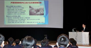 1995年の阪神大震災の現場で活動した兵庫県警の現職幹部が13日、教訓を語り継ぐために警察学校の初任科生ら約150人に講話した。31年前、初任科生として生き埋めになった人の救助に当たった公安2課の小牧朋弘次席兼調査官(50)は「現場では初任科生だろうがベテランだろうが関係ない。甘えは許されない」と自覚を促した。