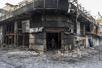 イランの首都テヘランで、デモの最中に燃えた建物から出てくる人=10日(ゲッティ=共同)