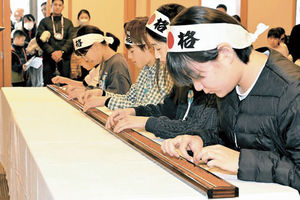 125桁のそろばんパチパチ 小中生「はじき初め」 岐阜市 2026年1月14日 05:00 両手を使いテンポ良くジャンボそろばんをはじく各学年優勝者=岐阜市伊奈波通、伊奈波神社 125桁の大型そろばんを使った「... 残り387文字(全文:404文字) この記事をお読みいただくには「デジタルプラン」または「宅配+デジタルプラン」の会員登録が必要です。無料会員の方はログインしてマイページからコース変更してください。デジタルプランまたは宅配+デジタルプランをご登録中の方はログインしてください。 岐阜新聞デジタル会員に登録すると 無料会員向け記事が読める ニュースレターで最新情報が受け取れる デジタルプラン、宅配+デジタルプランなら Webオリジナルコンテンツが読める 紙面ビューアが読める チケットの先行発売に参加できる お得なクーポンが使える 新規登録ページ ログインページ トップ 岐阜のニュース 125桁のそろばんパチパチ 小中生「はじき初め」 岐阜市 関連記事 マネロン役か男逮捕 カンボジア拠点 643万円詐取疑い 煙突解体中に男性転落、重体 大垣市の工場 学校グラウンドのトイレ盗撮 関署、33歳容疑者逮捕 中電不正背景に焦り? 浜岡原発再稼働へ審査長期化 規制委立ち入りへ 経営陣の関与も調査 車にはねられ75歳女性死亡 美濃加茂市の県道 6歳暴行死 母懲役4年 神戸地裁 叔母2人は猶予判決 おすすめ記事 どこまでも大衆でいたい 服部健一さんが残した「とんかつや」「ふくだや」 学校グラウンドの女子トイレに小型カメラ 美濃加茂市の会社員、侵入・撮影容疑などで逮捕 岐阜1区に服部氏擁立へ 次期衆院選で立憲民主 洗濯機の中に乳児遺体遺棄容疑 各務原市の30代母親逮捕