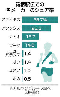 箱根と実業団対抗、区間新が続出 駅伝高速化背景に靴進化 2026年1月14日 05:00 東京箱根間往復大学駅伝で、スタートする選手たち=2日、東京・大手町 ◆アディダスがシェア1位 アシック... 残り553文字(全文:570文字) この記事をお読みいただくには「デジタルプラン」または「宅配+デジタルプラン」の会員登録が必要です。無料会員の方はログインしてマイページからコース変更してください。デジタルプランまたは宅配+デジタルプランをご登録中の方はログインしてください。 岐阜新聞デジタル会員に登録すると 無料会員向け記事が読める ニュースレターで最新情報が受け取れる デジタルプラン、宅配+デジタルプランなら Webオリジナルコンテンツが読める 紙面ビューアが読める チケットの先行発売に参加できる お得なクーポンが使える 新規登録ページ ログインページ トップ 岐阜のニュース 箱根と実業団対抗、区間新が続出 駅伝高速化背景に靴進化 関連記事 マネロン役か男逮捕 カンボジア拠点 643万円詐取疑い 煙突解体中に男性転落、重体 大垣市の工場 学校グラウンドのトイレ盗撮 関署、33歳容疑者逮捕 中電不正背景に焦り? 浜岡原発再稼働へ審査長期化 規制委立ち入りへ 経営陣の関与も調査 車にはねられ75歳女性死亡 美濃加茂市の県道 6歳暴行死 母懲役4年 神戸地裁 叔母2人は猶予判決 おすすめ記事 どこまでも大衆でいたい 服部健一さんが残した「とんかつや」「ふくだや」 学校グラウンドの女子トイレに小型カメラ 美濃加茂市の会社員、侵入・撮影容疑などで逮捕 岐阜1区に服部氏擁立へ 次期衆院選で立憲民主 洗濯機の中に乳児遺体遺棄容疑 各務原市の30代母親逮捕