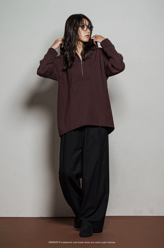【HERSHEY’S】 ミルク&ダークチョコハーフZIPフーディ大人にちょうどいい、チョコレート感
