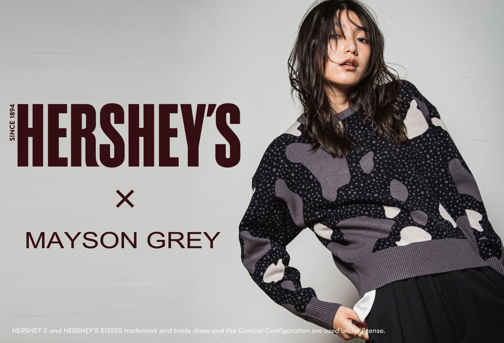 MAYSON GREY(メイソングレイ)では、1894年にミルトン・S・ハーシーによって設立された北米最大のチョコレートメーカーの一つ、ザ・ハーシー・カンパニー(The Hershey Company) の「HERSHEY’S(ハーシーズ)」とコラボしたアイテムを1月16日(金)より販売を開始します。対象商品をお買い上げいただいたお客様には、「ハーシー ディップドプレッツェル クッキー&クリーム」をプレゼントいたします。(数量限定)